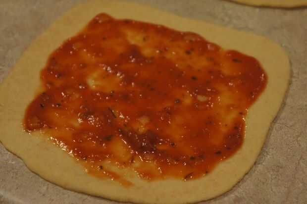2) rodillo en forma rectangular y aplicar la salsa de pizza en el centro evitando los bordes.
