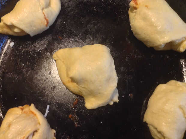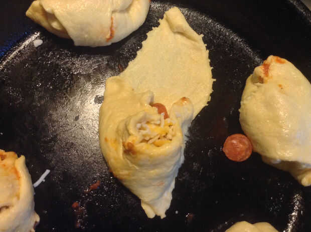 Estos bolsillos de pizza media luna rollo toman unos 5 minutos para hacer, y son tan deliciosos.  Estos se pueden también hacer muchas formas diferentes, con diferentes rellenos. Jamón y queso es también grande y me imagino la mantequilla de maní y j