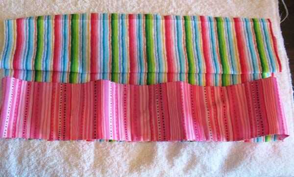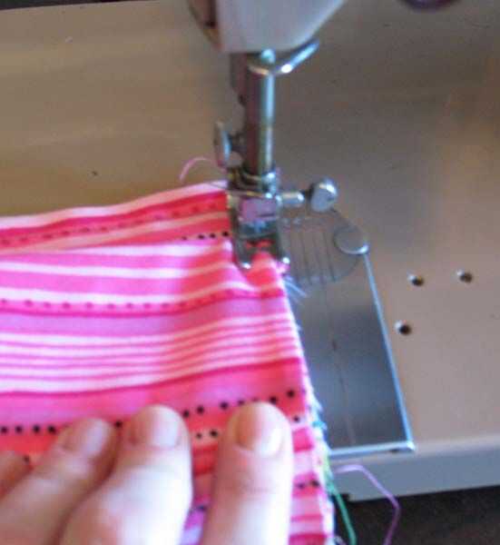 Coser un lado corto, tomando la espiga hacia fuera antes de que golpea la máquina de coser. Girar y coser por el borde largo, reducir las arrugas y tela adicional de la franja de bolsillo en la longitud más corta de la base. Dispositivos más grandes (como mi cámara y la billetera) requerirá tomar pliegues en la tela del bolsillo. Coser el lado corto segundo, quitando eso Perno así.