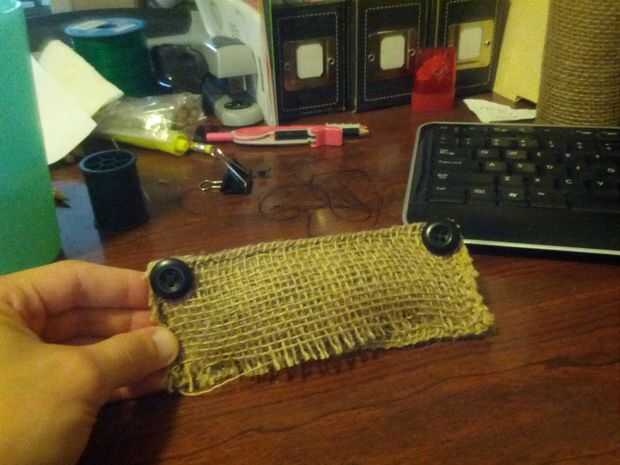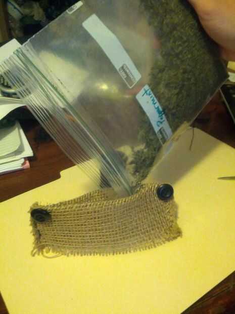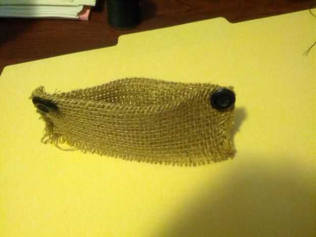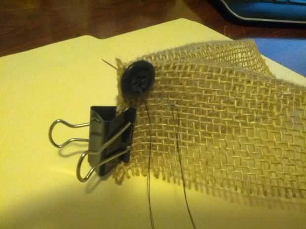 Usando el clip para mantener la arpillera plegada, rápidamente cosida una costura a lo largo de cada borde, dejando la parte superior para el final. Llena la bolsita de menta seca y cosida a la costura pasada. Hecho!