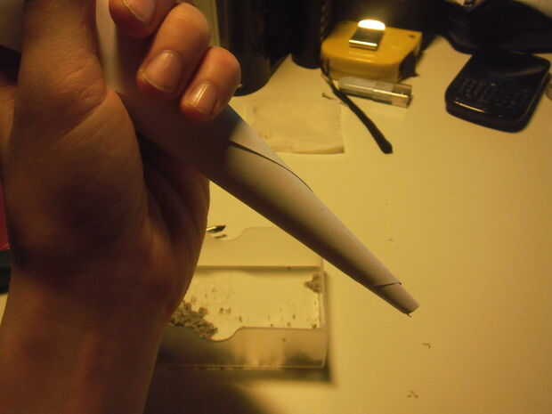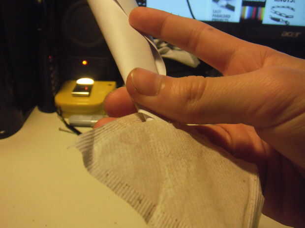- Ruédelo para arriba en un cono, haciendo al final mantenga suficientemente pequeña para caber en el agujero en la bolsita de té pero lo suficientemente grande para la salsa caber a través.