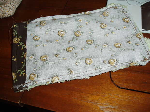Ahora las dos partes deben ser cosidas a lo largo de los lados y la parte inferior. Girar la parte de tela externa sobre la interna, por lo que es la parte posterior derecha.