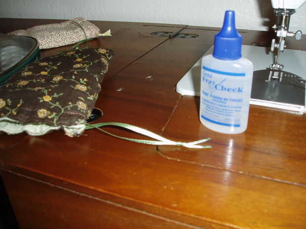 Atar la cinta juntos unos 2-3 pulgadas de la bolsa. Este debe dejar espacio suficiente para atar el bolso cuando es en ella. Recortar la cinta y poner un poco de anti-fray líquido a lo largo de los extremos de la cinta para evitar colapso.