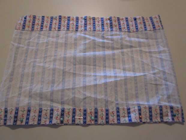 Fotos 2-3: a continuación, poner alfileres a lo largo de dos de los lados abiertos. El tercer lado será la apertura de la bolsa (hacer que usted pin adentro hacia fuera, como se muestra en la imagen)