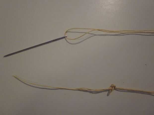 cuadro 4: ahora enhebrar su aguja con un hilo de rosca largo. Estás listo para empezar a coser.