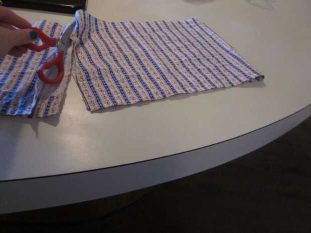 imagen 1: en primer lugar, elija cuánto quiere la bolsa que, dependiendo de lo que va a utilizar para. Luego corte dos piezas idénticas de tela. Para ello, doblar a la tela por la mitad y luego cortarlo al tamaño deseado (un rectángulo funciona mejor). Hacen uno de los lados del rectángulo en el lugar donde se dobla la tela.