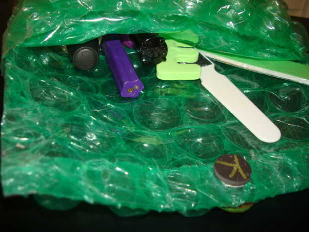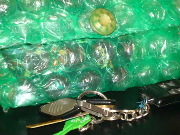 mi vecino se mudó el verano pasado y me dio un abrigo de burbuja verde. Ella me preguntó qué iba a utilizar para y naturalmente le dije: "instructables creo que haría un lindo embrague o bolso cosmético!" Simplemente no sabía cómo iba a llevarlo a cabo. Este instructable le mostrará cómo hacer un bolso cosmético inusual o con abrigo de burbuja, cinta adhesiva transparente, pegamento, imanes y un botón de embrague! Es rápido y fácil de hacer y es muy funcional! Permítanos empezar!