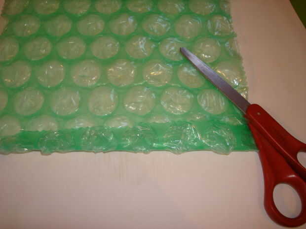 Corte con cuidado que no se rompa las burbujas. Está bien si las burbujas a lo largo de las costuras pop porque la cinta cubre esas áreas.