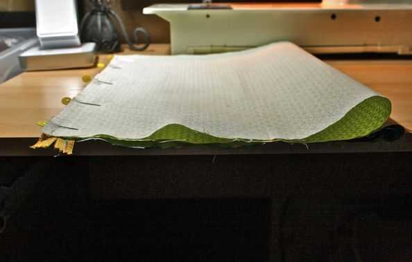 PIN y coser como lo hizo anteriormente. Luego Dale la vuelta, tomar la parte inferior de la guarnición y alinee con el borde de la cremallera. PIN y coser.