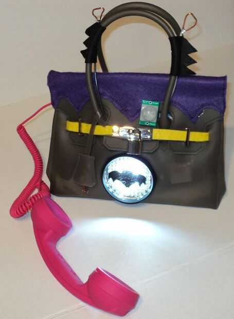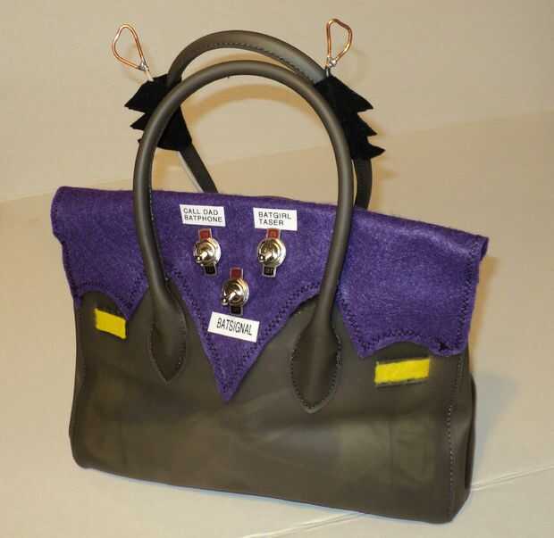 Este concepto se basa en el programa de televisión de Batman de los años 60 mediados que creció en el. Es el Batman clásico de TV. De eso, es la Batichica de TV clásico que proporciona la inspiración para esta pieza púrpura de costura y handbaggery. Creo que la Dama de hierro se habría llevado a uno de estos.