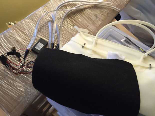 La iluminación interna de la bolsa utiliza un microcontrolador de Adafruit baratija conducir algunos segmentos del filamento de Neopixel LED con el código de Adafruit aprendizaje sistema Cyberfalls peluca. Puedes seguir el tutorial de Adafruit para la construcción.