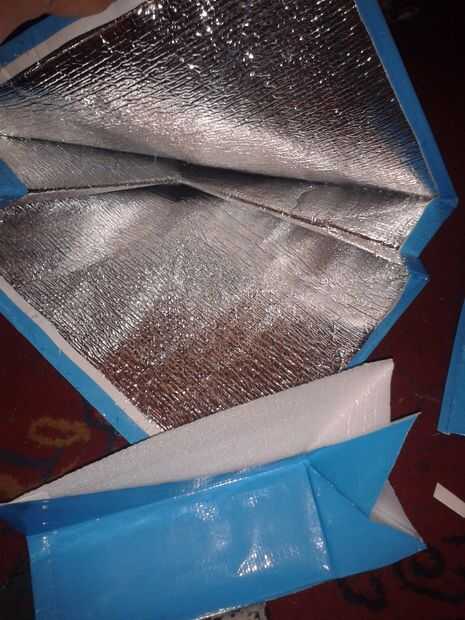 el interior tiene aislamiento papel espuma respaldado su usado para mantener los alimentos fríos hasta 3 horas más, así que mi conjetura era ayudaría a mantenerme caliente noche. especialmente con un saco de dormir como un interno.