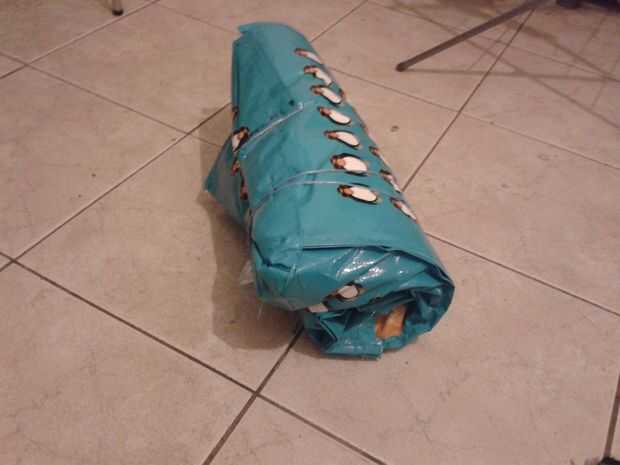 así que aquí está el bolso bivvi enrollado y listo para ir.