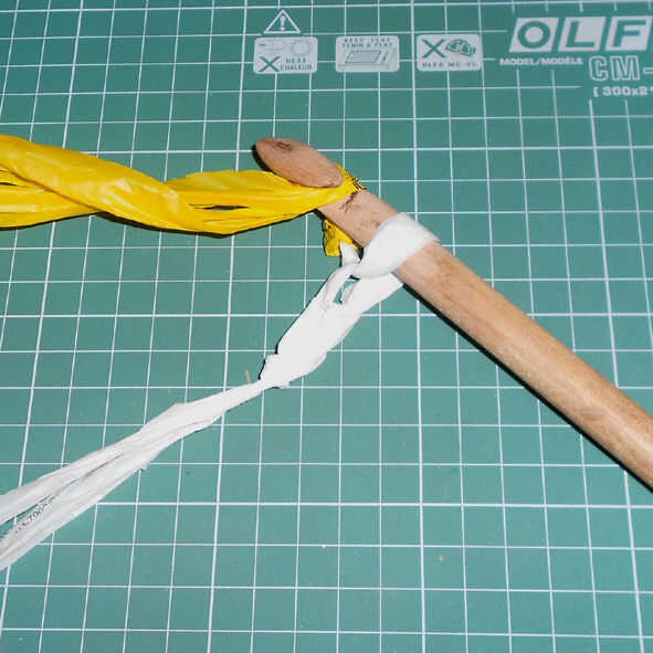 Lazo el gancho alrededor de la tira para que quepa en el gancho y tire a través de la mirada. Ta-da. Ahora han comenzado su puntada de cadena. Siguen otros 28 puntos de la misma manera, para que tenga un total de 30 puntos de sutura, colgando del gancho.