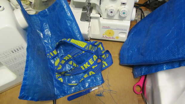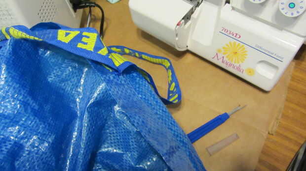 Tenemos que conseguir emparejar la tela y las correas de la bolsa así será deconstruir el otro bolso. Los restos se hará un poderoso fino bolso de TARDIS IKEA, estuche o algo.