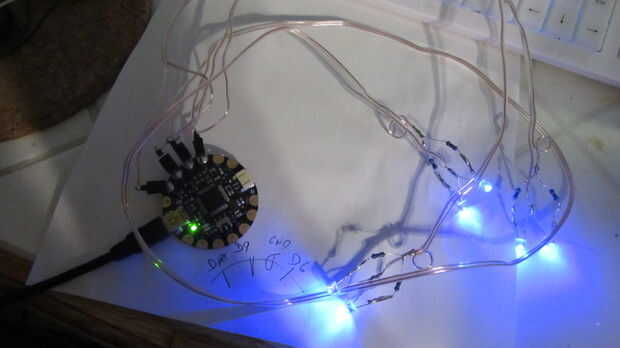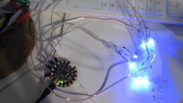 Tengo un Adafruit Flora que es una variante de arduino diseñada para accesorios personales.