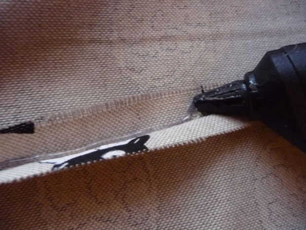 Para asegurarse de que las costuras son lo suficientemente fuertes como para sus compras, aplique una tira de pegamento a lo largo del interior de cada costura con una pistola de pegamento.