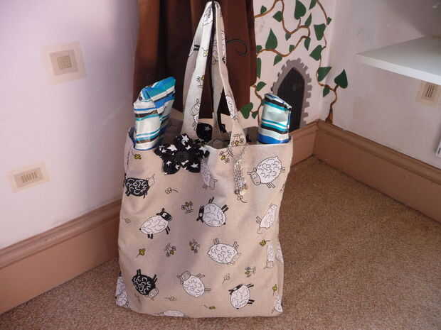 Básica, bolsos de compras son grandes para toting alrededor de todas sus cosas. Aún mejor son fáciles de hacer. Utilice las costuras francesas en tres lados de la Plaza. Añadir algunos mangos y dobladillo en la parte superior y se realizan. Debido a