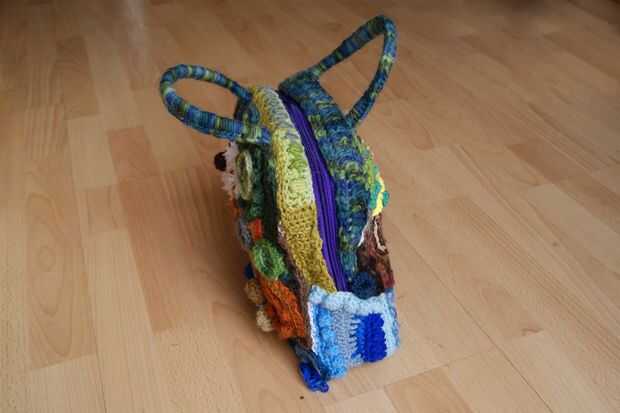Aquí está el bolso desde diferentes ángulos. Los guijarros levantados eran rellenos de hilo sobrante para hacerlos completo.