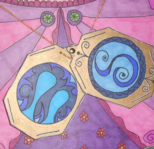 Use un brad para unir el frente y la parte posterior de lo Horrocrux.  Fijar algunos cuerda así que puede usar el medallón.