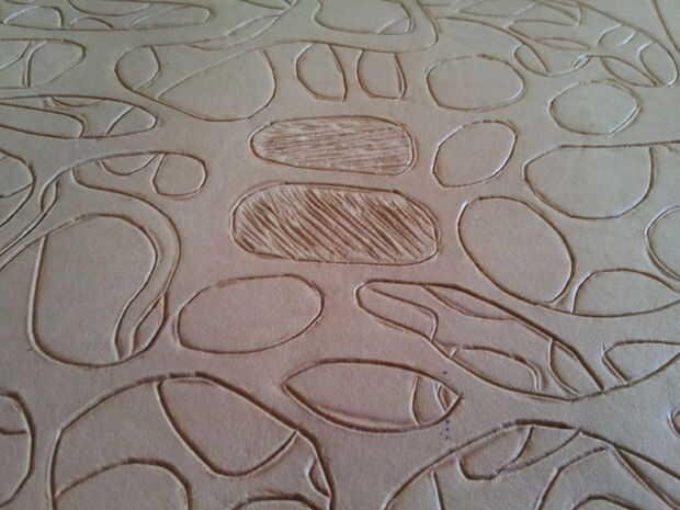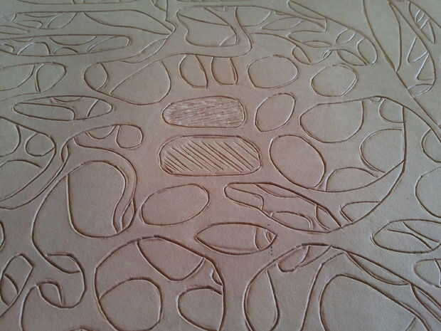 Esto es muy importante para el aspecto y ayuda a sabe donde biselar más tarde. Los círculos que son no "carne" o "piel" será donde van las barras. Mira las notas de la foto para más detalles.