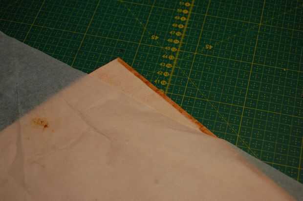 Cuando cose en la parte de atrás a la escuadra que mojado en forma de las esquinas de la escuadra para que sea más fácil unir.