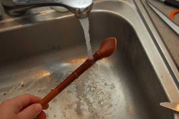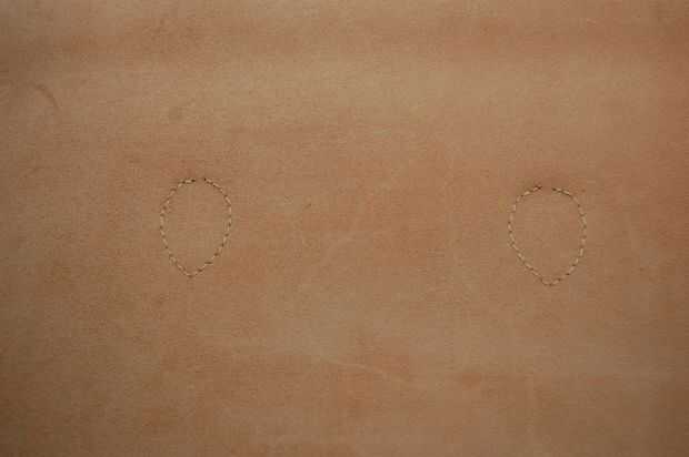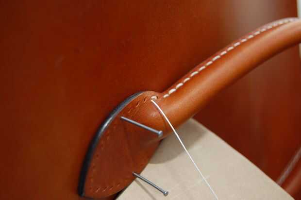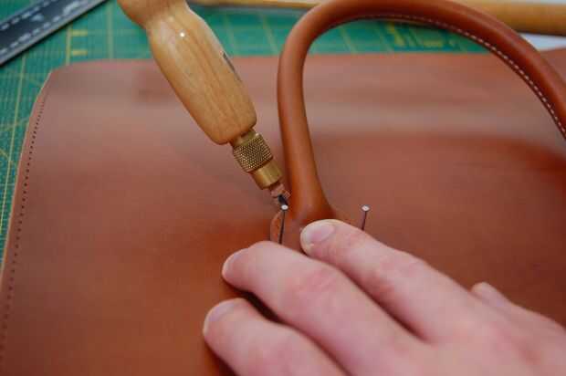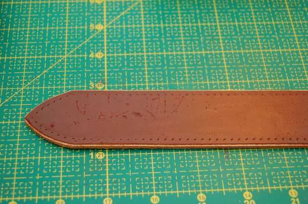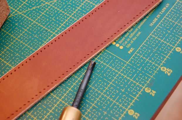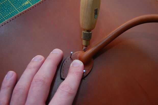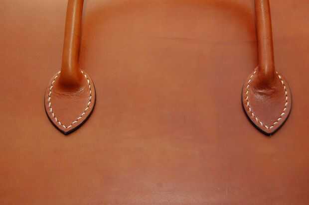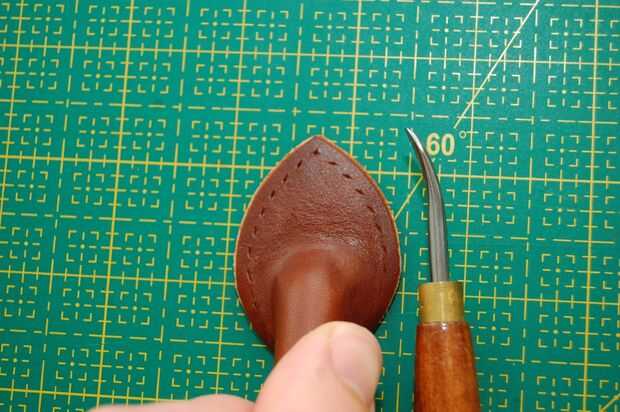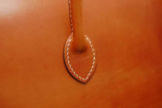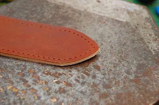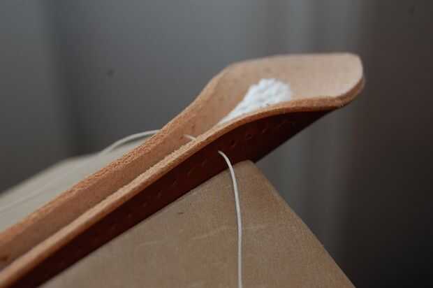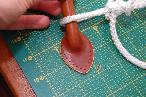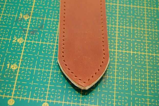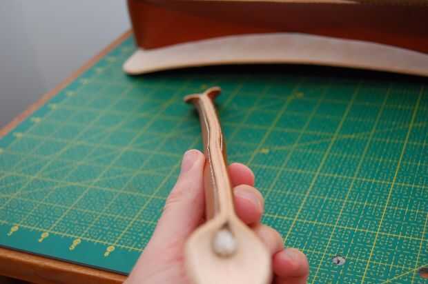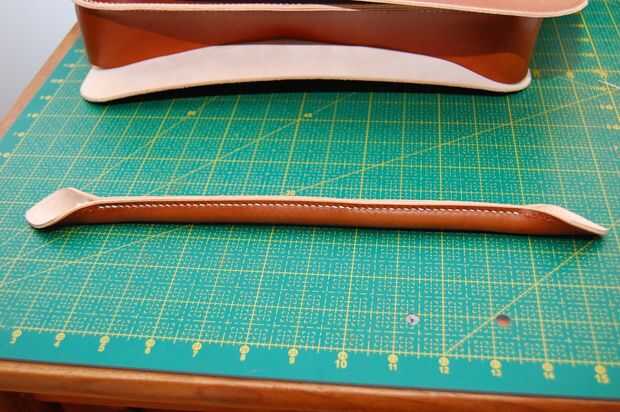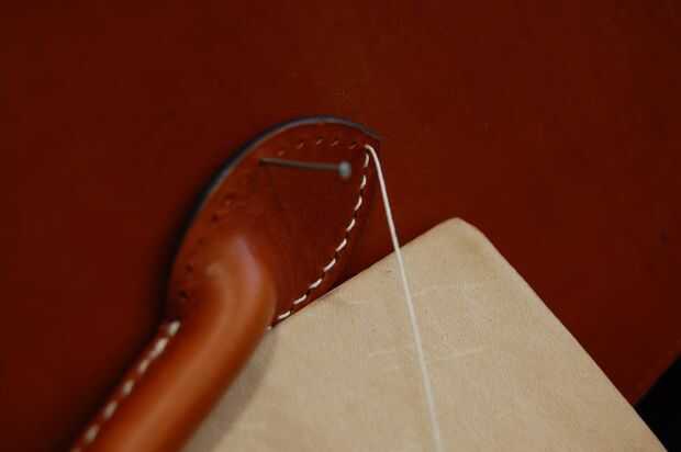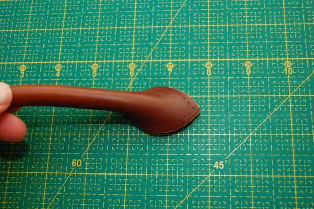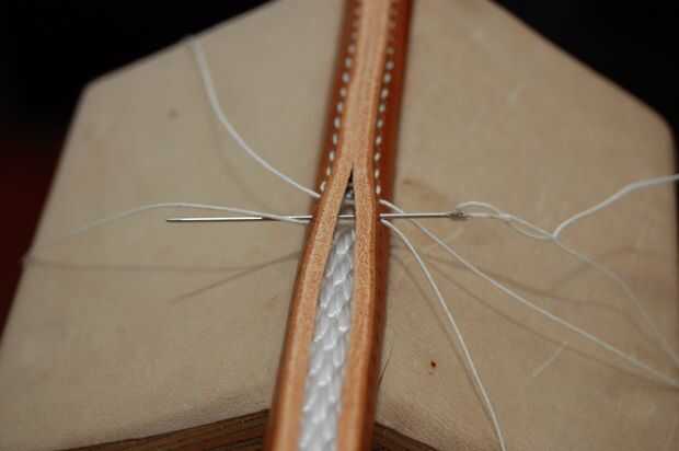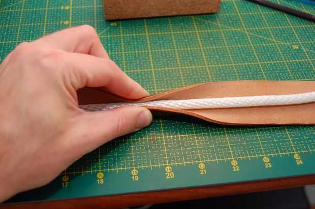 Este mango no es el asidero real en la bolsa acabada pero el principio es el mismo. El mango terminado sin embargo no tiene una cuerda dentro. Es hueco, pero el cuero es grueso que parece redonda.