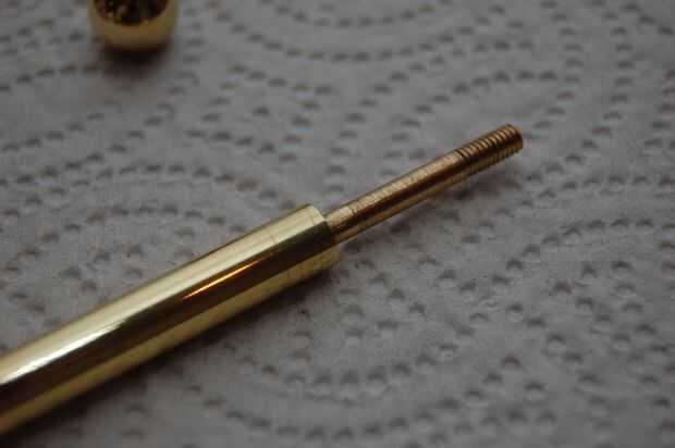 Necesita un torno para hacer el latón la barra lo que hice. Normalmente no tienen la muesca al final pero creo que es una característica agradable. Evitar la correa desliza sobre la barra y no necesita la bola en el extremo de ser tan grande. Para asegurar la bola en el hilo de uso bloqueo de subproceso de locktite.