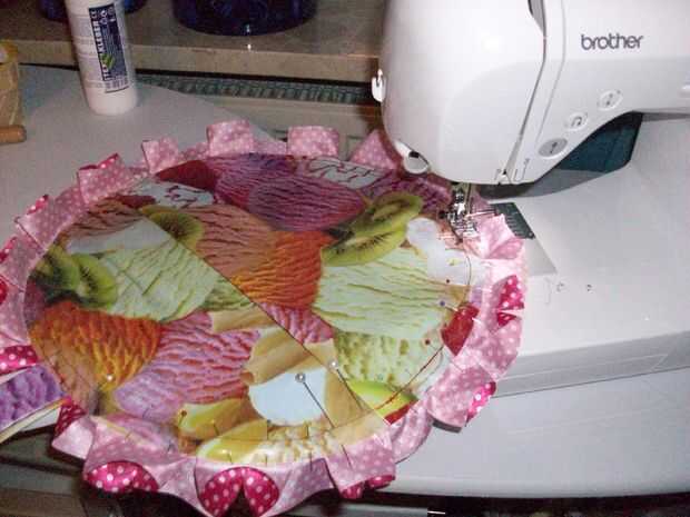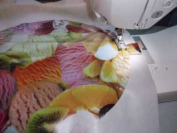 -coser a lo largo del círculo y dejar un espacio de 1-0, 5cm entre la costura y el borde del círculo