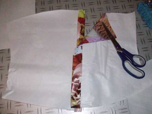 -más o menos cortar 2 piezas un poco mayor que la mitad del círculo (piezas que se superponen más adelante)