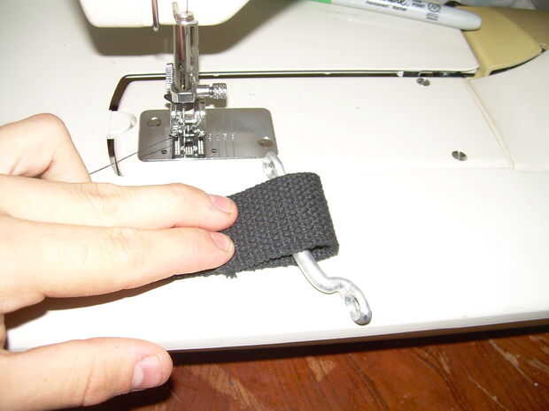 Coser un lazo de cinta de bucle de Lacayo restantes en. Usando una parte posterior virar o punto de Cruz, coser alrededor de una pulgada de la cinta a sí mismo de la manera más segura posible.