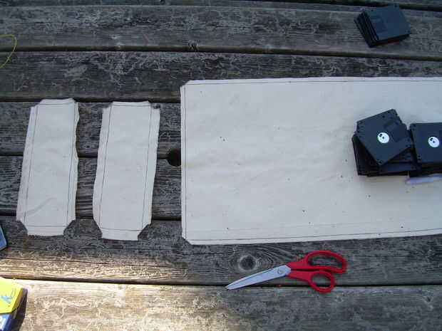 Estas fronteras formarán los dobladillos de la tela para impedir que desentrañar y dar a la bolsa un aspecto más ordenado. Las fronteras del tamaños de los rectángulos más pequeños son las aletas de forma que proporcionan una superposición cuando la matriz se dobla para arriba.