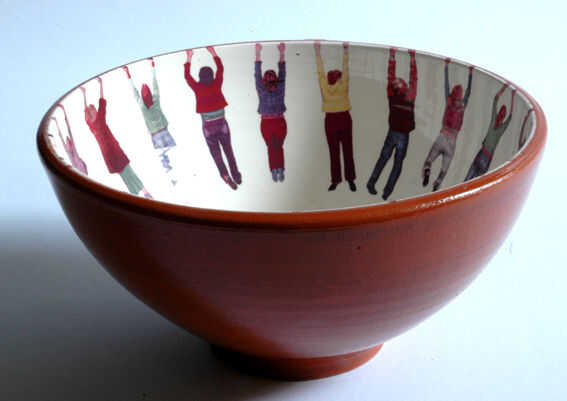 -Mueva el recipiente unas pocas pulgadas y traza la otra mitad del primer círculo.