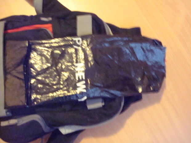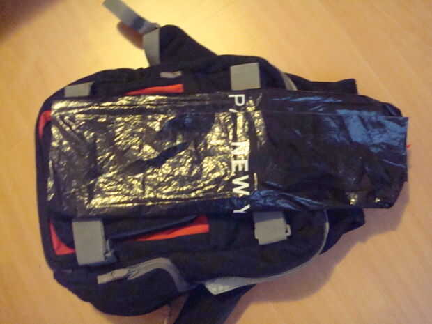 Esto es un extensor de bolsa. Es basicallly un bolso que las correas alrededor de una mochila regular para que puedas tener más espacio de almacenamiento. En mi caso he querido mantener mi equipo de ciclismo en una bolsa separada de mis cosas de la e