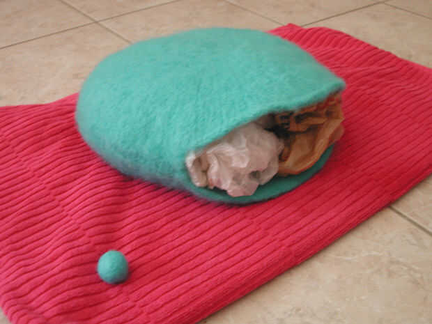 en este Instructable, le mostraré cómo tomar un pedazo de tejido (con 100% lana) y convertirlo en un bolso de fieltro funky. Para cualquiera de ustedes que amo tejer y nunca han de fieltro antes, verá qué fácil este proceso. Puede Agregar una nueva d