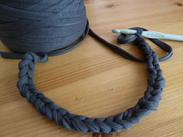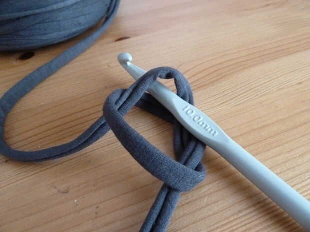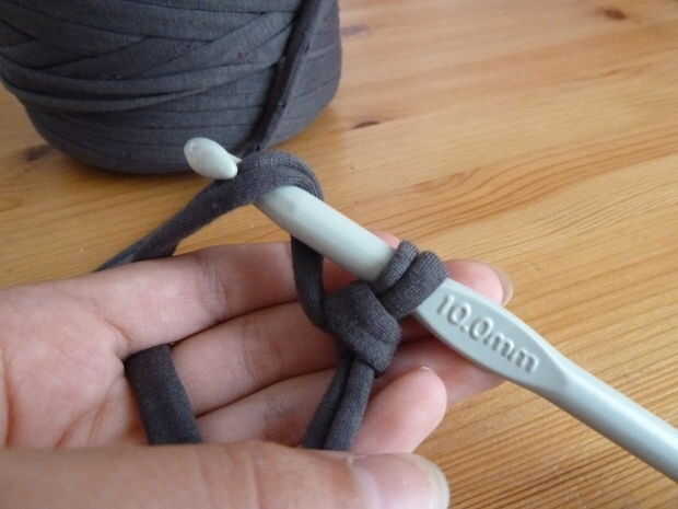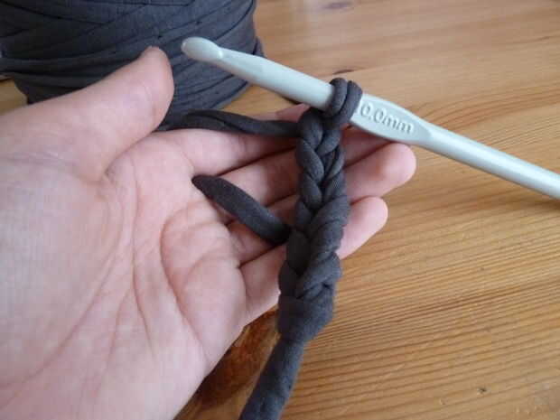 Start by making a slip stitch. En los cinco primeros cuadros se muestra cómo hacer esto. Después de eso, vamos a empezar con la primera fila: 30 cadenas (si quieres hacer un bolso más grande, hacer cadenas de más, si quieres un bolso más pequeño que menos cadenas)