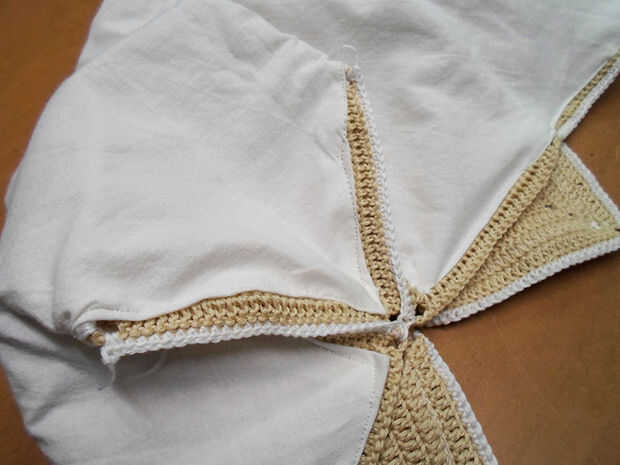 Usted notará 2 mitad plazas en la parte inferior de la misma: tienes que coser los 2 lados a las plazas por encima, siempre con sc.