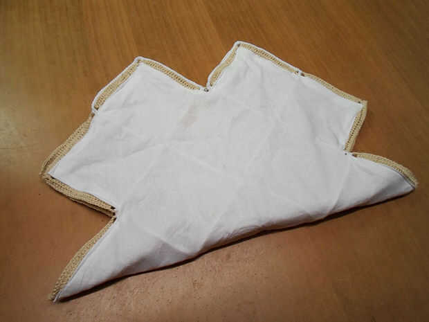 Doble la bolsa en 2, dejando el lado de la tela en el exterior (daremos vuelta más adelante).