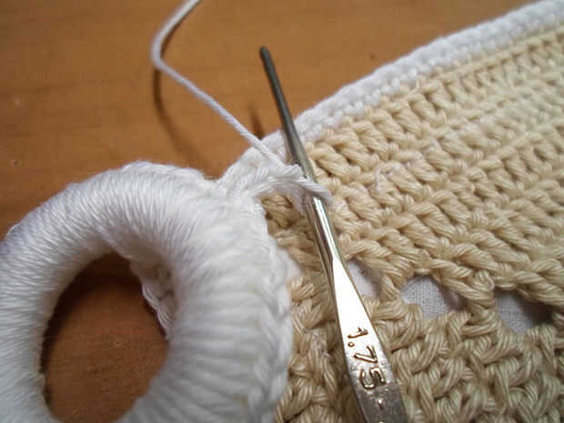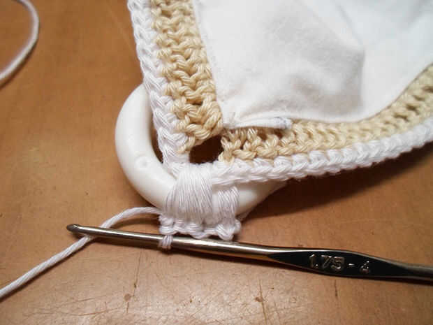 Como hacer esto, trate de incorporar el ángulo de la bolsa en él. En caso de que no se puede hacer, usted puede coserlas juntos más adelante.