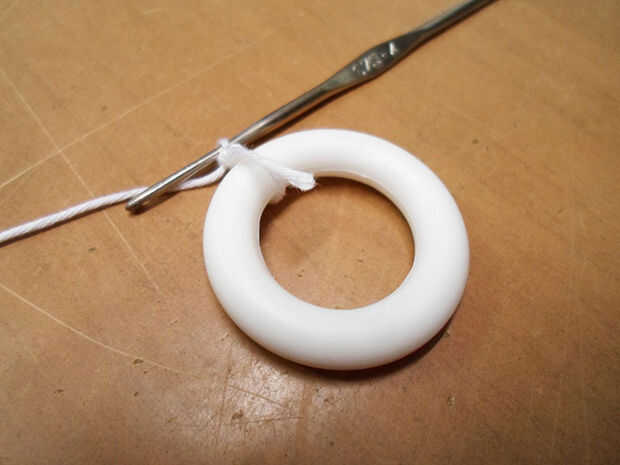 Cadena 3 y hacer 41 dc todo el anillo (las primeras 3 cadenas se consideran 1 c.c.).