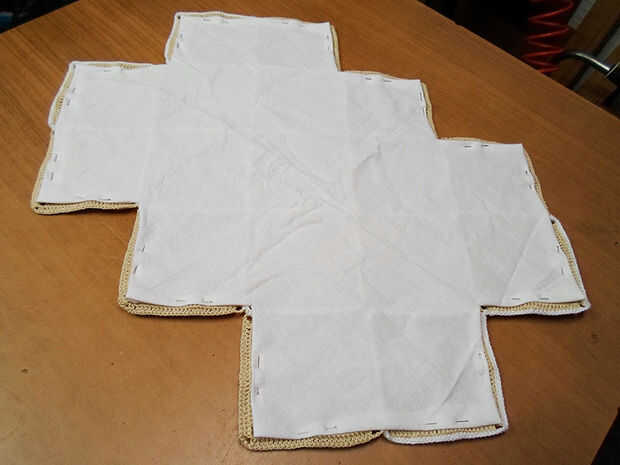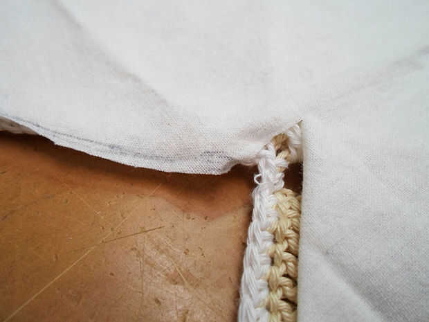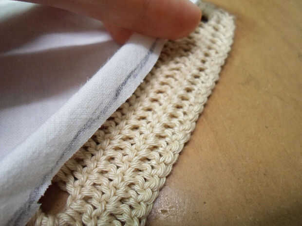 Usted notará que la tela será más difícil doblar en ángulos internos, así que corte un poco para poder doblar los 2 lados (ver fotos).