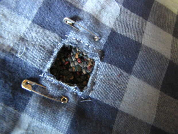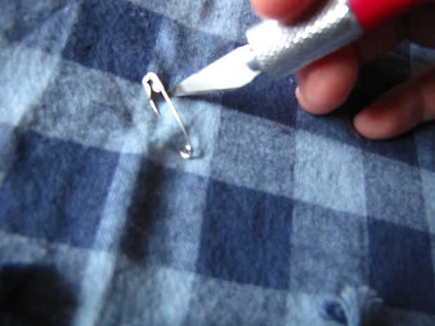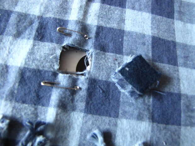 Después de haber cortado los agujeros en la parte superior e inferior, tienes que coser alrededor de los orificios (lo debe hacer a los agujeros superiores a pesar de que es inútil, sólo hacer más uniforme)