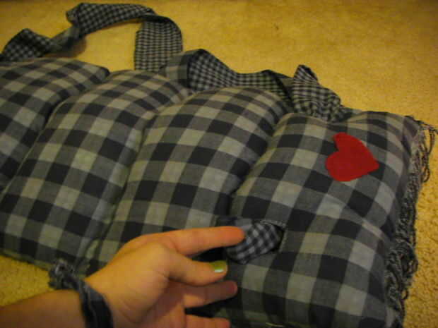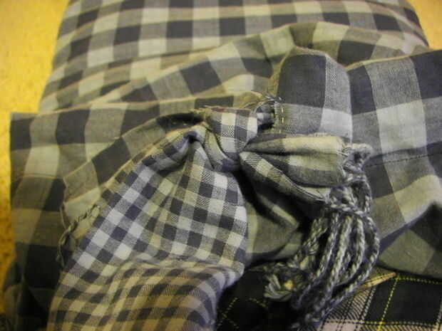 También me gustaría señalar que la bufanda que utilicé tenía borlas en la parte inferior, para mantener en el exterior, los cubrió al exterior, por lo que cuando cosieron mi mala sería en el exterior.