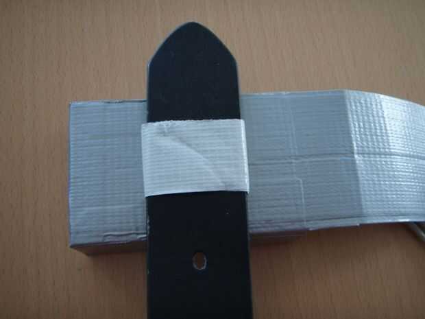 Seguro lazo con cinta adhesiva adicional. Pongo un todo alrededor de la bolsa a través del lazo de la correa sobre la correa de la tapa.