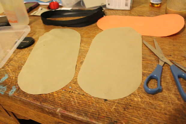 2. cortar a la tela por el corte en el patrón. Debe dejar con dos óvalos de la tela.