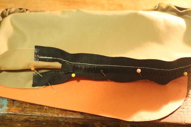 * Si utiliza un cierre de separación y en algunos punto separadas las dos mitades lo único de que necesita para asegurarse de que no es línea de la mitad de la cremallera que comienzan y terminan en las mismas piezas correspondientes de formas ovaladas. La forma más sencilla de hacerlo es cerrar la cremallera, la cremallera todo el camino mientras la fijación.