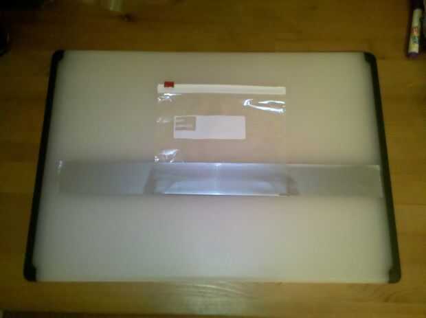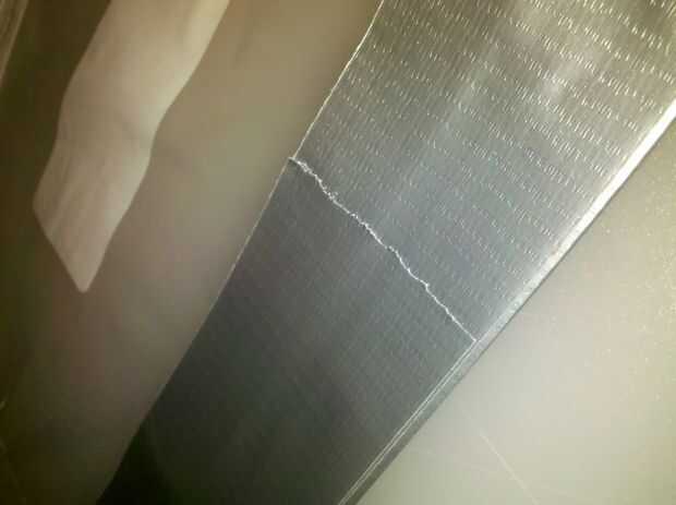 Necesitan reforzarse más que cualquier otra cosa ya que habrá 4 estacas dentro de las esquinas. La primera capa cubre el borde inferior y envuelve alrededor de las esquinas. La manera más limpia imaginaba para hacer esto era cortar la cinta en un ángulo de 45° antes doblándola hacia atrás. Esto deja el adhesivo expuesto así que puede ser envuelto alrededor del lado.