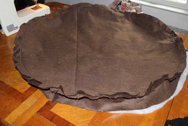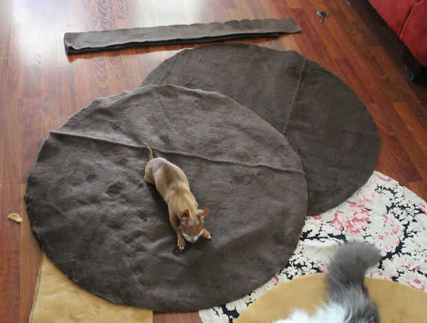Utilizando el color de la hamburguesa, yo corte dos círculos de diámetro de 34 pulgadas. y una tira de 2 pulgadas de alto y 104 pulgadas de largo.