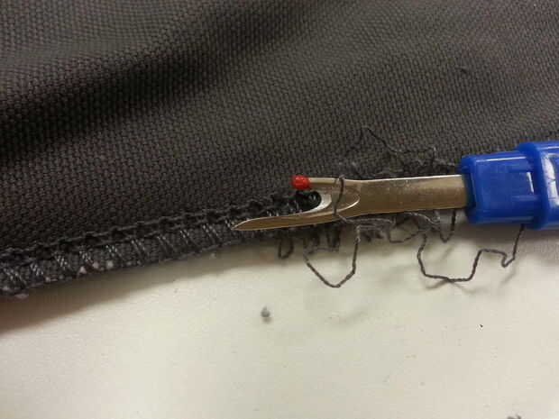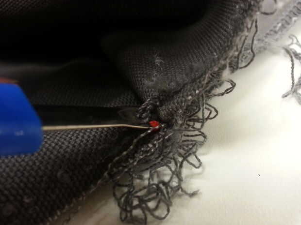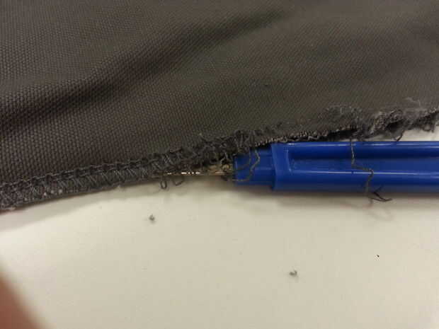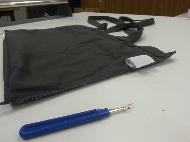 Idealmente la bolsa tendrá una construcción similar a la mía, y todo lo que necesita hacer es girar de dentro hacia fuera y rasgar las costuras a los lados.