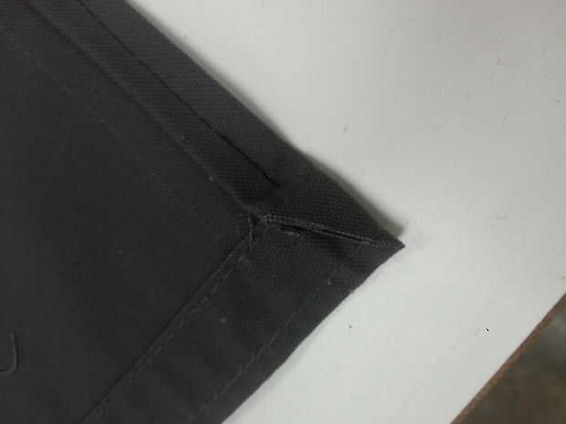 Cortar las asas comprometidas la puntada en este borde, así que doble sobre y cortar las esquinas. Coser a lo largo de las costuras existentes.